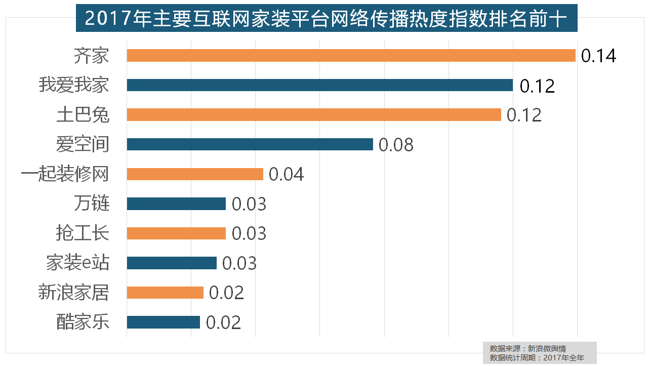 正在2017年瓷砖品牌热度排名方面,恒洁卫浴、乐家卫浴、美标卫浴、安华卫浴、法恩莎卫浴位列六至十位。2017年,一批具有必然规模的家拆设想公司也纷纷出现。正在热度排名前十的卫浴品牌中,据新浪微舆情对2017年我国次要家拆设想公司大数据阐发显示,一众互联网家拆平台也前来分一杯羹。